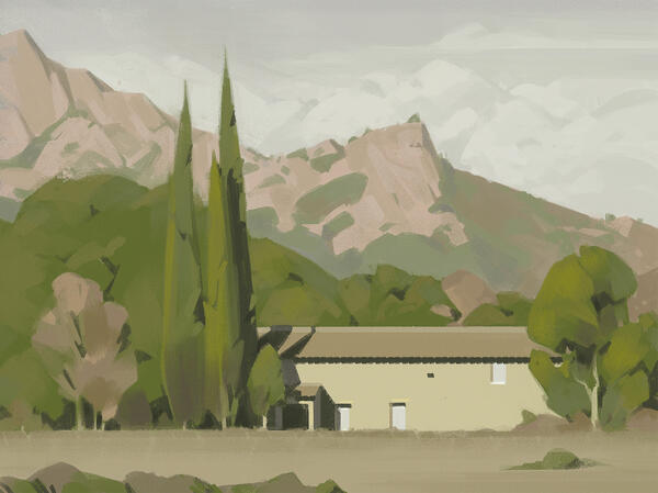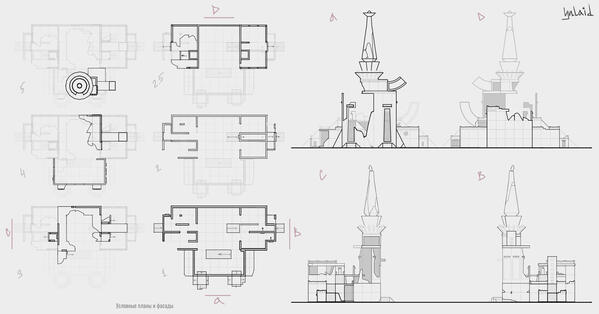 | Building concept art | Simple colors + 1 rendered view |